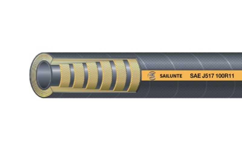 Feature:The hose consists of an oil- and heat-resistant synthetic rubber inner tube, six spiral plies of high-tensile steel wire reinforcement, and a weather-resistant synthetic rubber cover. Manufactured in accordance with SAE J517 100R11 and GB/T 10544-2013.